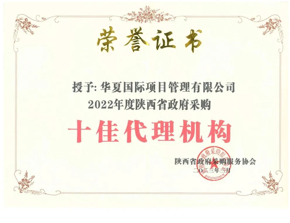 2022年度陜西省政府采購“十佳”代理機(jī)構(gòu)