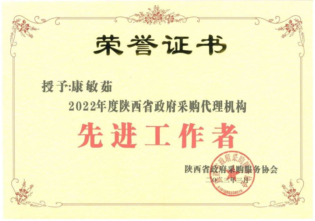 2022年度陜西省政府采購代理機(jī)構(gòu)先進(jìn)工作者