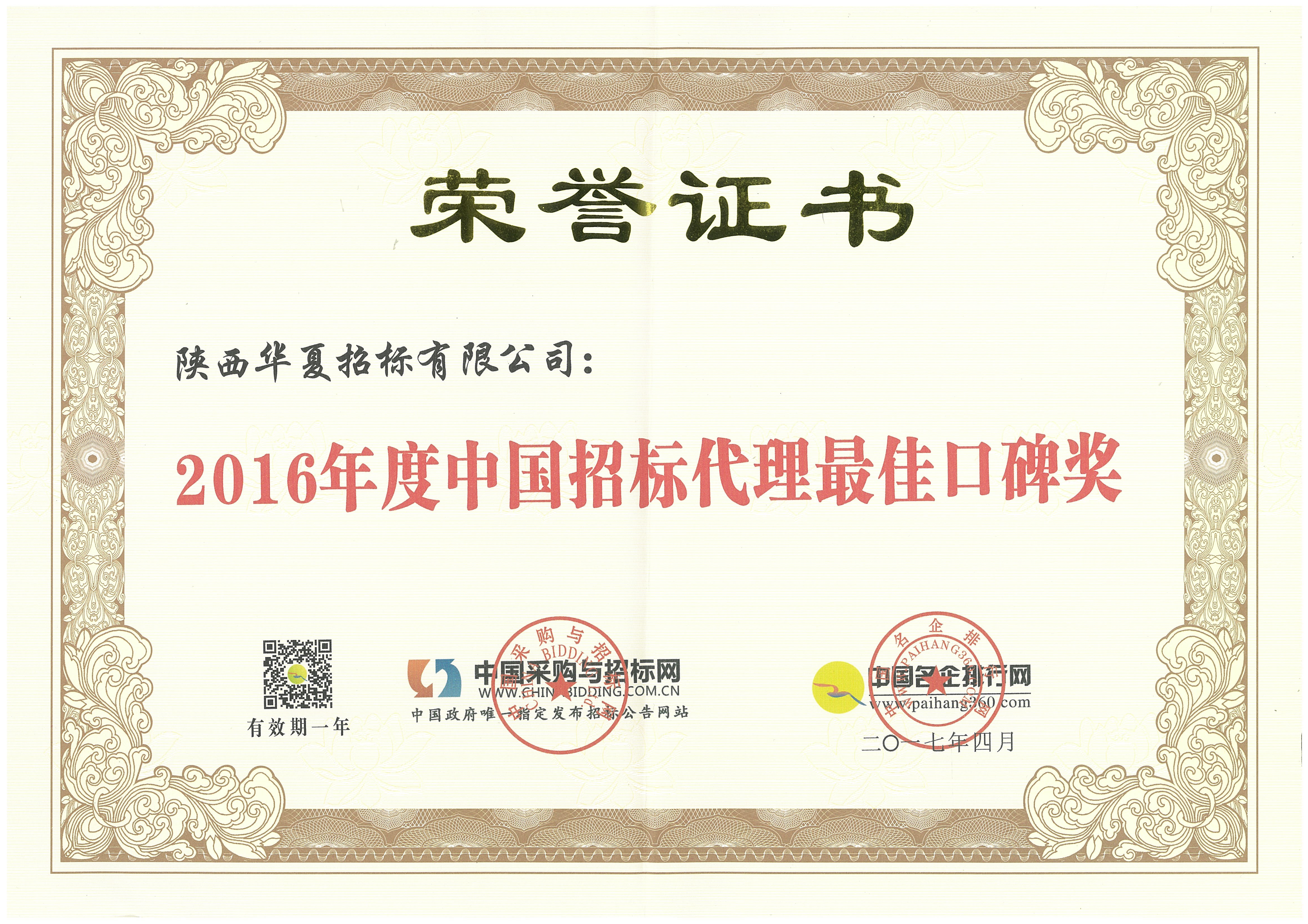 2016年度中國(guó)招標(biāo)代理最佳口..